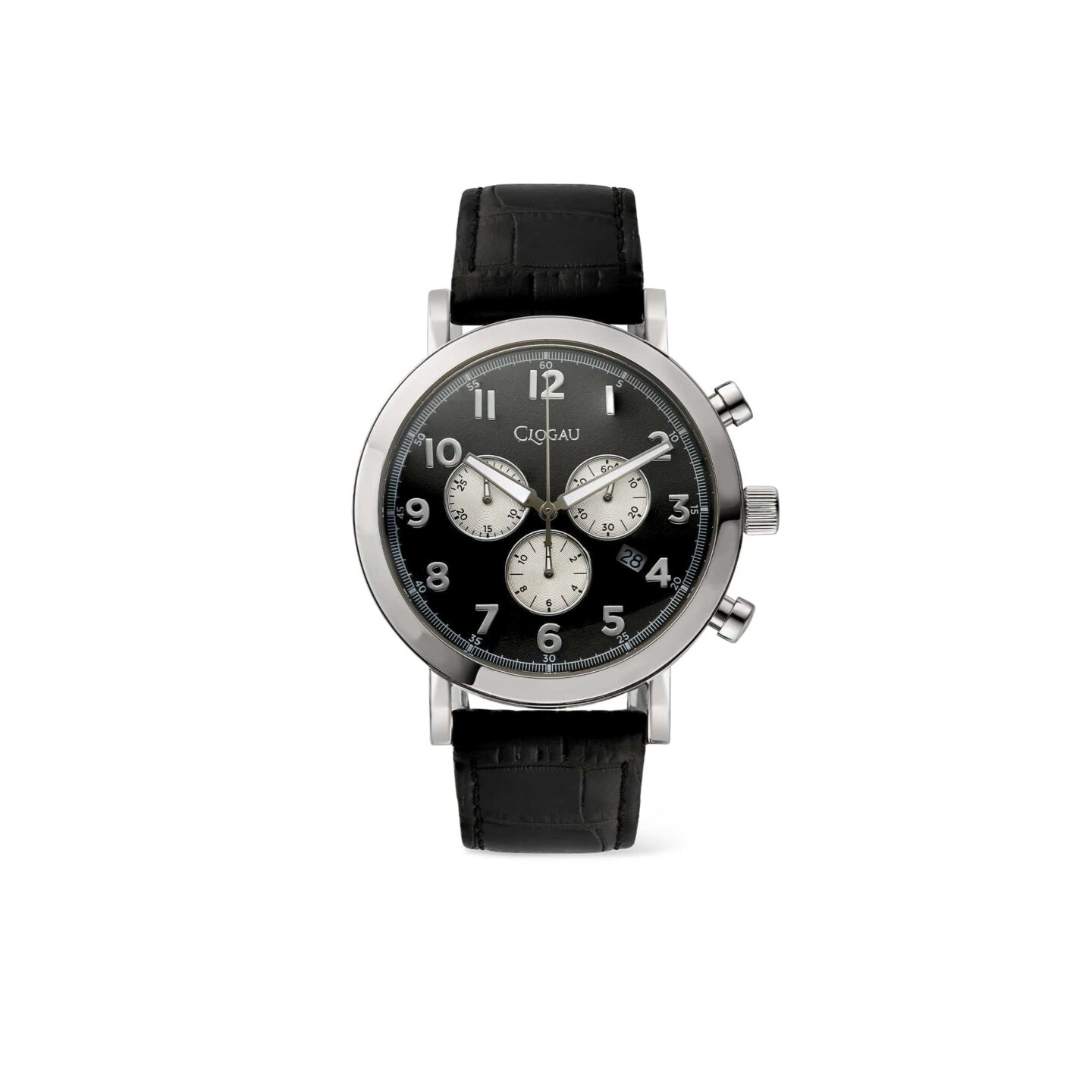 This Clogau Gwynant watch is a stylish fusion of classic chronograph styling and cutting-edge technology. The polished stainless steel case features a textured black dial, plus contrasting silver-tone hands and numerals. The timepiece is held securely on a matching grained black leather strap. A Swiss-made quartz movement provides incredible accuracy when every second counts.