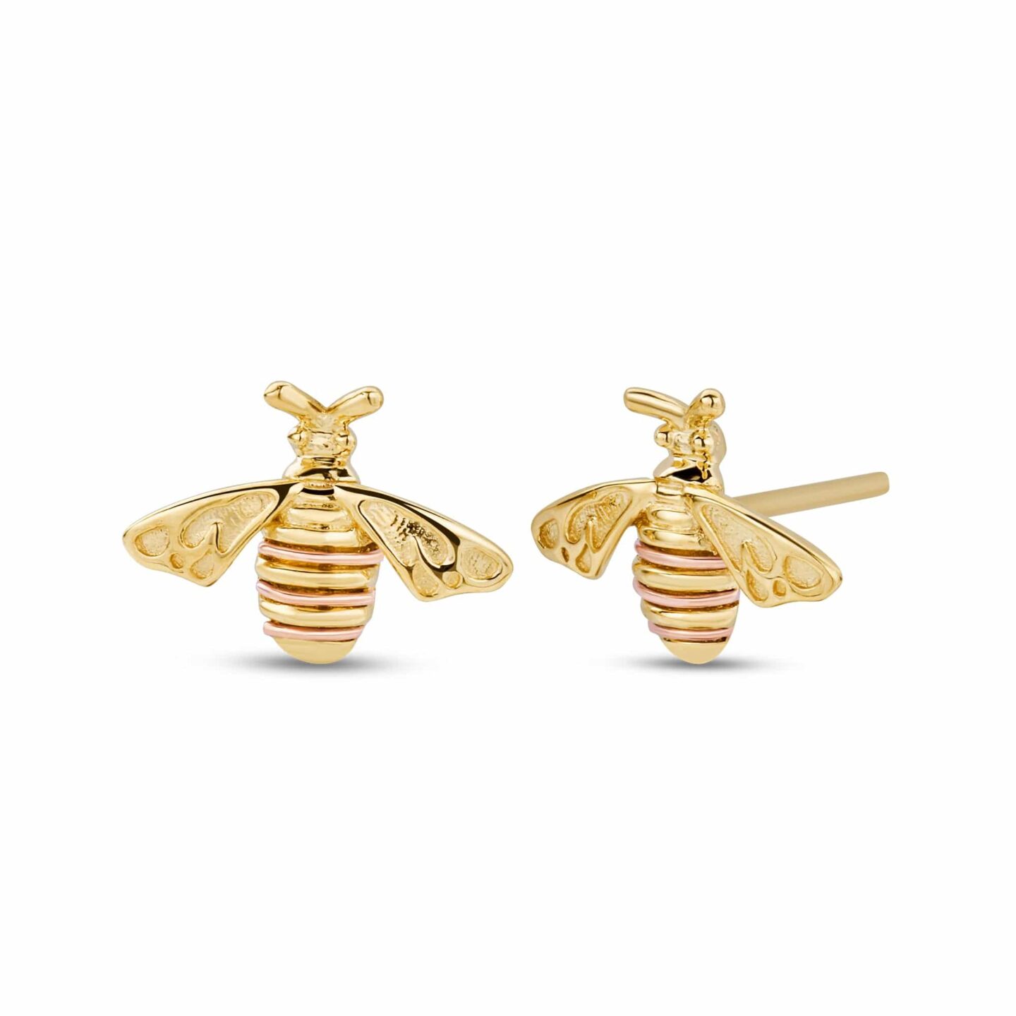 These 9ct solid gold Honey Bee stud earrings are inspired by the symbol of togetherness, generosity and prosperity, while citrine is said to encourage positivity. Complete with 9ct yellow gold post and scroll fittings.