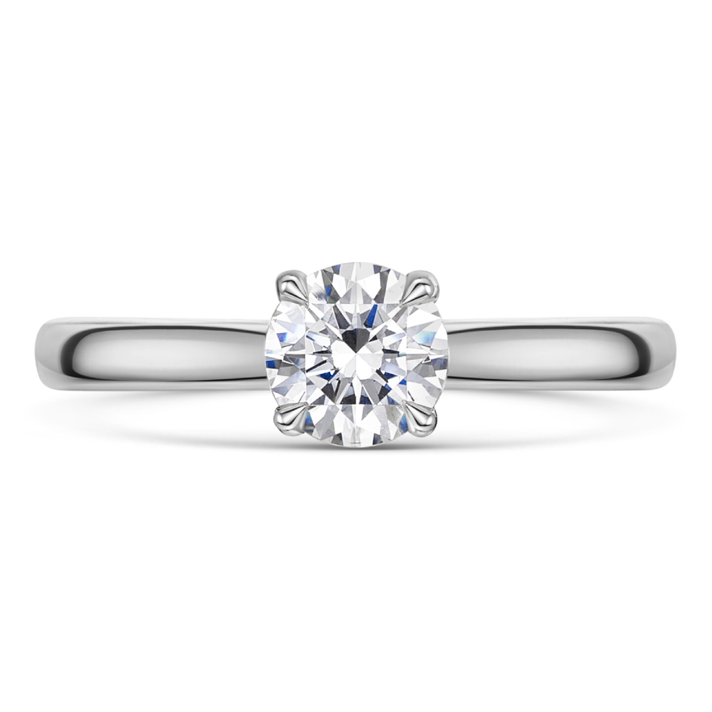 This beautiful ring from our Provenance Collection, features a single 0.50ct round brilliant cut natural diamond, set in platinum with elegant talon claws and polished tapering shoulders.