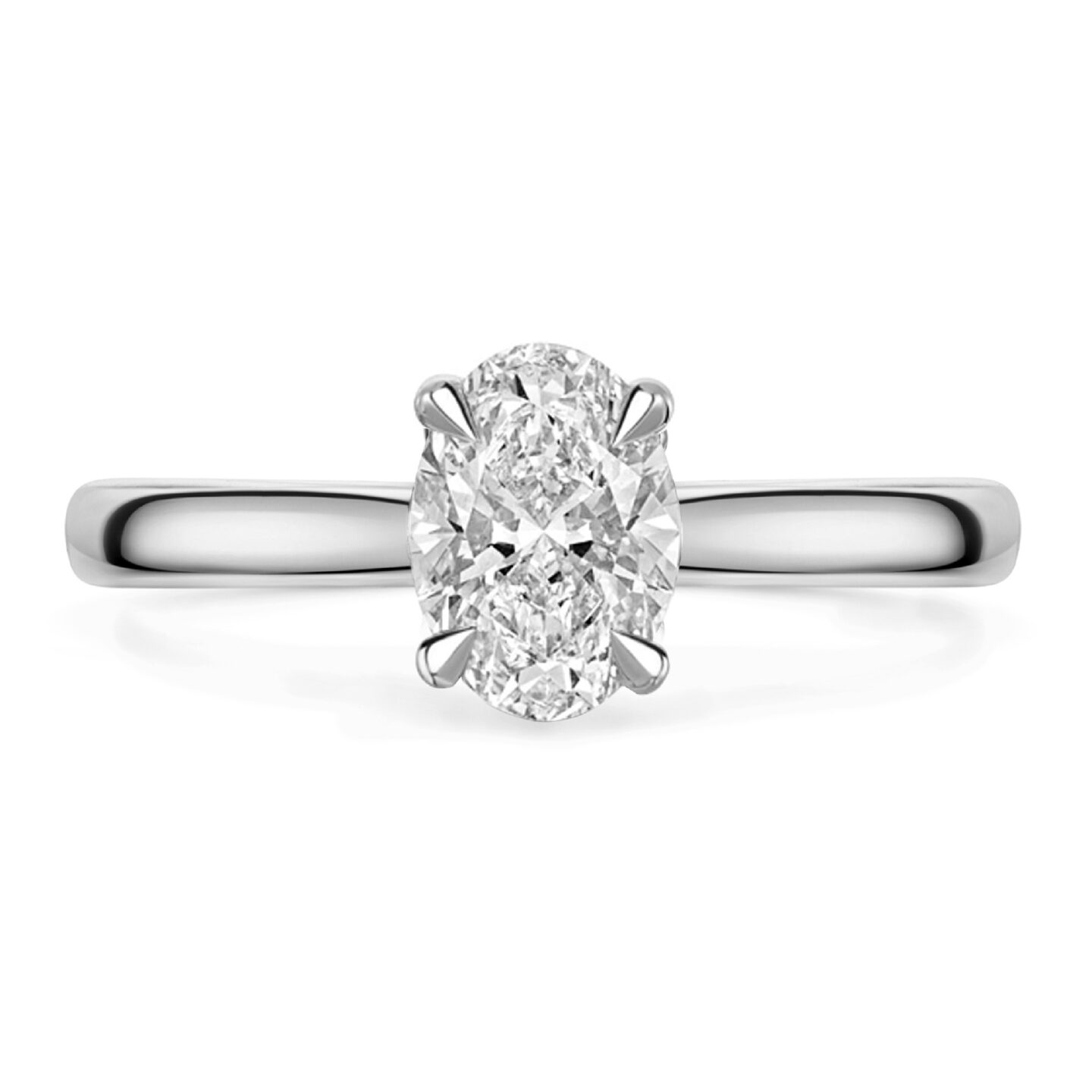 This stunning ring from our Provenance Collection, features a single 1.01ct oval natural diamond, set in platinum with elegant talon claws and polished tapering shoulders.