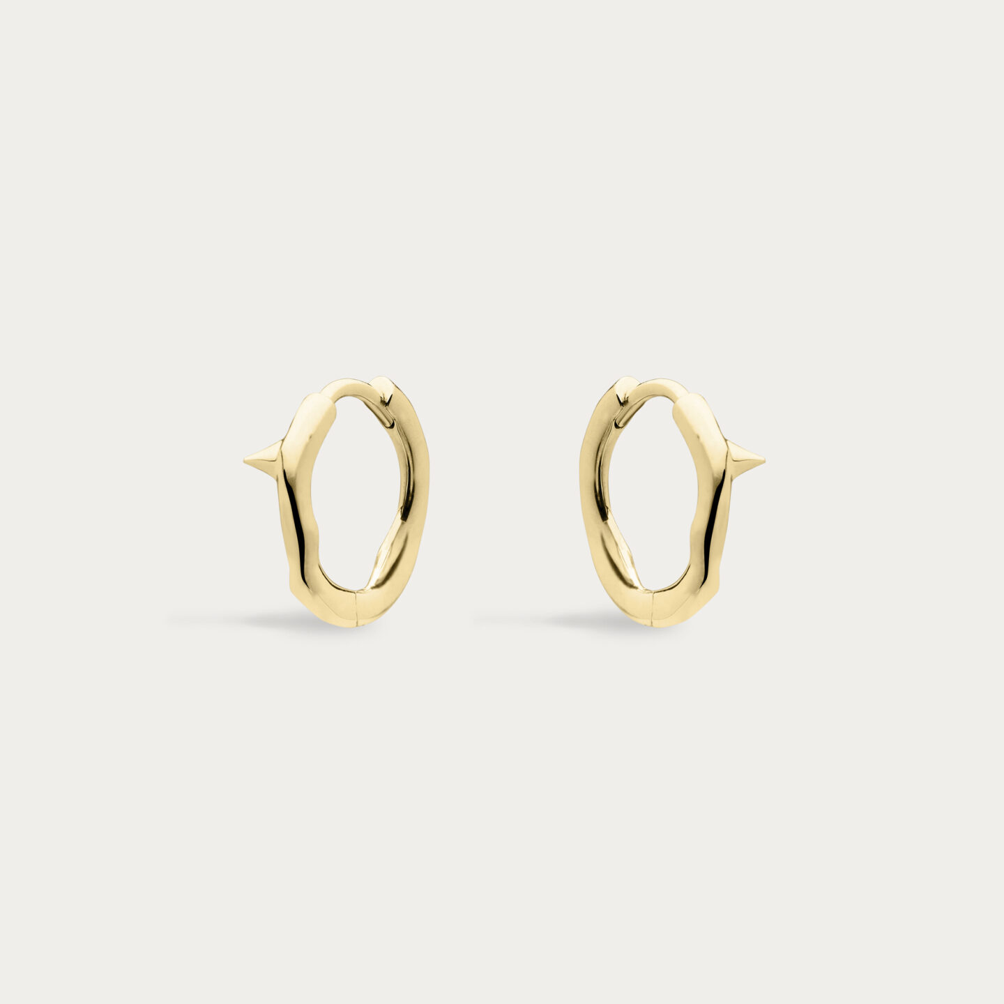 Drawing on Shaun Leane’s storied Rose Thorn motif, this miniature hoop captures the tension of nature’s duality — delicate yet defiant. Its twisted form curves elegantly around the ear, making it a striking standalone or a textural layer within a curated look. Available in sterling silver and yellow gold vermeil. Complete with post fittings.